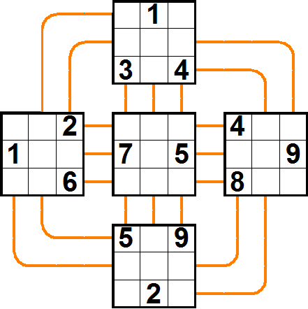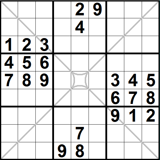 Sudoku Mania | Sudoku Mania posted @ 2014-08-28 9:17 AM Link to original post : Bent Diagonal Sudoku 2014 - 2And Another Bent Diagonal sudoku today. Rules of Classic Sudoku apply. Additionally, there are 4 Bent Diagonals marked in the grid. Digits cannot repeat on any of the Bent Diagonals. Posted in Bent Diagonal Sudoku, Grids |