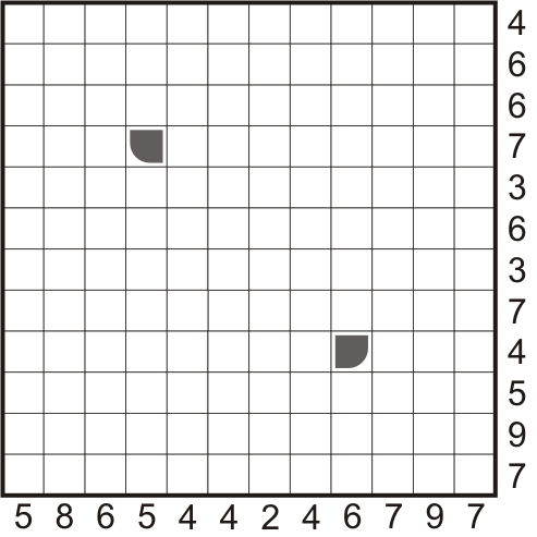 Play together | Play together posted @ 2014-06-08 8:12 PM Link to original post : nr. 947 - RadarRadar is one of my favourite puzzles. It's a well-known genre, but it's not especially popular recently. Hence I will publish some puzzles, and I will share some solving tips.I was thinking when I can say that this is a trick of the puzzle types. I think anything that more then a simple deduction is trick or pattern. Such as in a Yin and Yang puzzle when in a 2x2 area there are 3 white circles then the 4th is black is just a simple deduction. But the edge connection is a trick. Of course it is consequence of rules, so it is a logical deduction, but not a simple deduction. My first 4 Yin and Yang puzzle on the Beginner Contest were solvable without any trick, but it is more faster if you use the tricks in trivial puzzle too. Today I publish the 0th puzzle of the series. I call it 0th puzzle because it is solvable with simple deductions. For example if there are N empty cells in a row, and it is required to fill N-1, then it is a simple deduction that the 2nd cell from the side cannot be empty. Or if the clue is 3, then there is only one cloud in that row which is 3 cells width. Normally I like creating 10x10 puzzles without given cloud parts. But when I make a trickless one, it is better to give some elements and to use a bigger size. Rules for Radar Posted in Daily League Sudoku, Sudoku |
