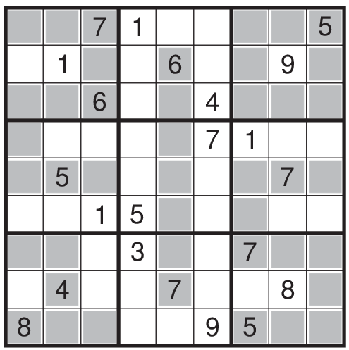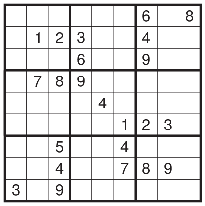 GET SET GO | GET SET GO posted @ 2015-01-07 3:40 AM Link to original post : Puzzle No 126: Diagonal Sudoku (# 2nd Puzzle in 2015)This is my 24th Sudoku contribution to: ( #2nd in 2015) Daily League! The League of Extraordinary Ladies and Gentlemen Remember that you can solve this puzzle from the League online on the Sudokucup Guest League page with a 24 hr delay. Place numbers in the grid such that each row,column and 3*3 box contain the numbers 1-9. Main Diagonals (marked for clarification) also contain numbers 1-9. Theme: Tetro / Pentominoes Difficulty: Medium Sudoku: Posted in Diagonal Sudoku, Medium, Total Puzzles |